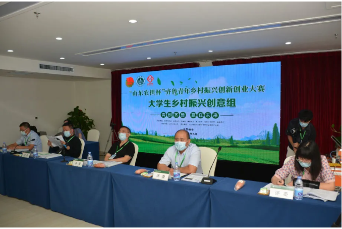 “青创齐鲁”——“山东农担杯”齐鲁青年乡村振兴创新创业大赛(大学生乡村振兴创意组)比赛现场。