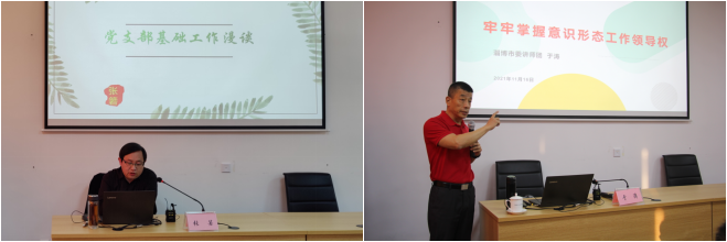 本次培训班,邀请山东能源枣矿集团党校教授张箬,省演讲学会副会长、淄博市委讲师团副教授于涛围绕加强基层党建工作、牢牢掌握意识形态工作领导权授课讲座,省委党校马克思主义学院院长、教授林学启作党的十九届六中全会精神宣讲报告。公司党群工作部负责同志对公司党建工作制度、支部工作实务进行了讲解。