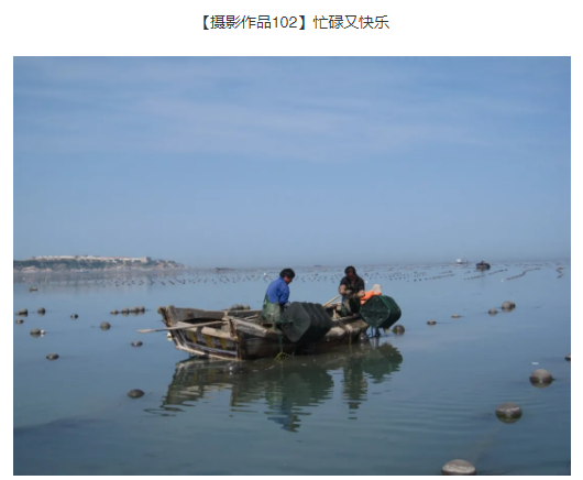 作品简介:《忙碌又快乐》图为通过山东农担公司审批通过的鲍鱼养殖产业链的客户与威海长青海洋科技股份有限公司签订租赁合同养殖鲍鱼,将幼鲍转移到鲍鱼养殖笼中,开始海上养殖的场景。