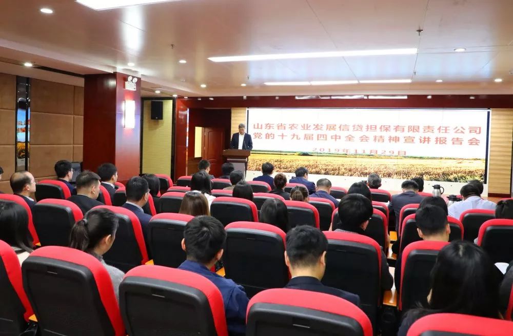 按照省委统一部署和省国资委党委《关于在省属企业开展党的十九届四中全会精神宣讲工作的通知》要求,11月29日下午,省农担公司在总部举行党的十九届四中全会精神宣讲报告会。省属企业党的十九届四中全会精神宣讲团成员,省农担公司党委书记、董事长魏华祥同志作专题宣讲报告。省农担公司、省担保集团在家的党委班子成员及经理层等高管人员、公司总部中层及以下员工在主会场参会,开展业务攻坚的部分公司领导、业务攻坚队成员和管理中心员工在各市分会场通过视频形式参会。