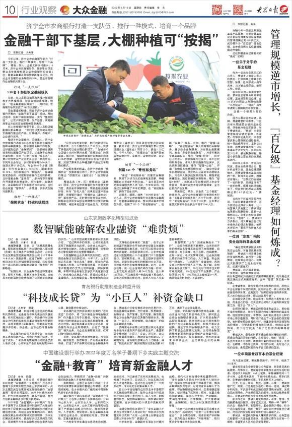 “长期以来,农业金融存在选择渠道有限、服务不均衡、信息不对称等短板。突如其来的新冠肺炎疫情加速了公司数字化转型的步伐。”山东农担战略发展部部长李玉林介绍,“经过两年多的探索,公司目前基本实现了数据聚合化应用、业务线上化运行、客户精准化触达、风险全流程管理、经营动态化管控等数字化经营管理模式。”