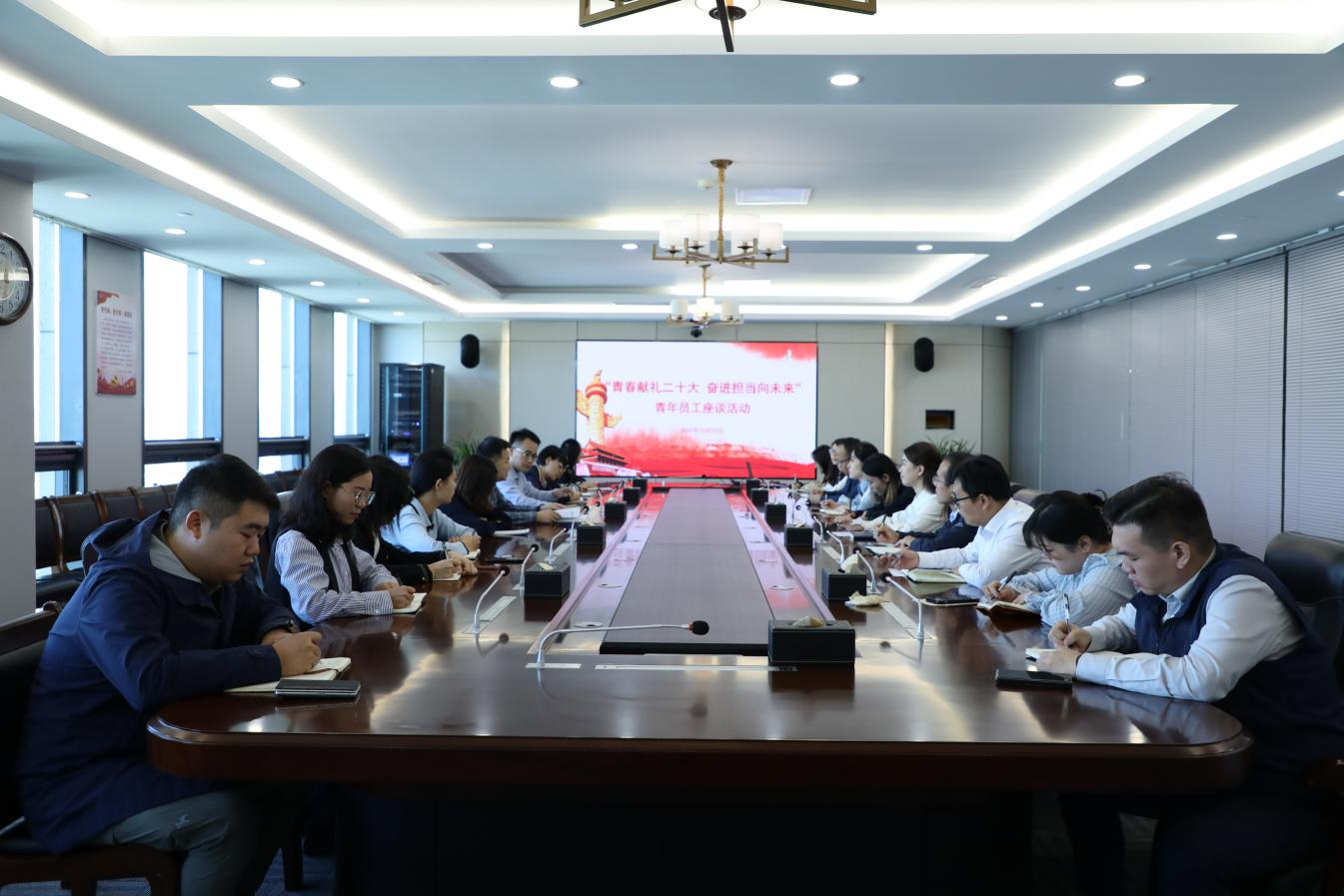 10月20日上午,山东农担组织开展“青春献礼二十大 奋进担当向未来”青年员工座谈会,公司总部青年党员、团员、党群工作部和团总支负责同志参加座谈。