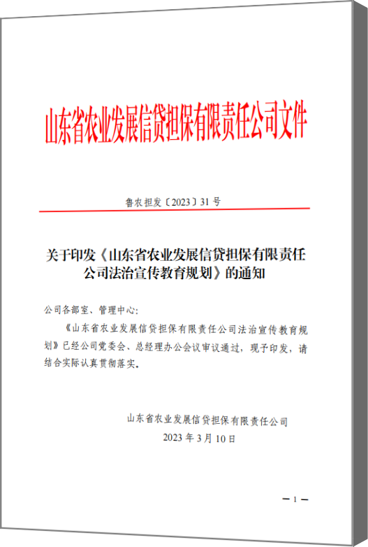 为深入学习宣传贯彻党的二十大精神和习近平法治思想,落实中央、省委有关决策部署,大力推进“法治农担”建设,近日,山东农担公司印发《法治宣传教育规划》(以下称《规划》),对公司法治宣传教育工作作出系统部署安排。