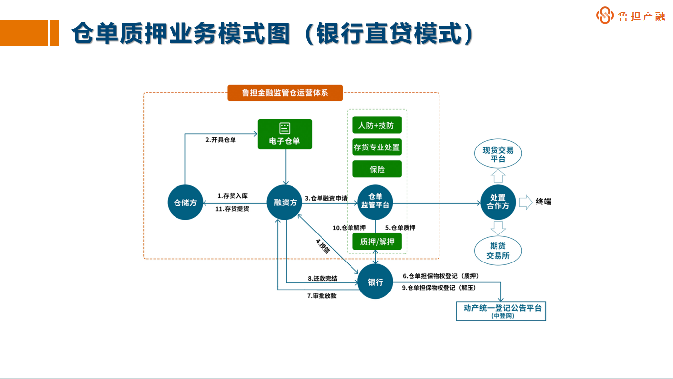 长期以来,传统农产品仓单质押业务存在贷后管理难、审贷效率低、业务数据乱、业务风险大等不足,难以满足贷款户的有效需求,鲁担产融打造的金融监管仓模式,有效整合了数据流、资金流、货物流,形成标准化电子仓单,让金融机构更愿“下单”,给企业吃上了“定心丸”。业务开展以来,鲁担产融专业化的数字监管能力和风险管控能力越来越受金融机构的认可。烟台银行、莱商银行均与产融公司签订金融监管仓战略合作协议,合作开发电子仓单金融产品,2024年12月27日,产融公司与莱商银行联合定制开发的“产融E贷”—线上电子仓单贷产品全面上线,该产品实现了数字金融服务与产业场景需求的深入融合。