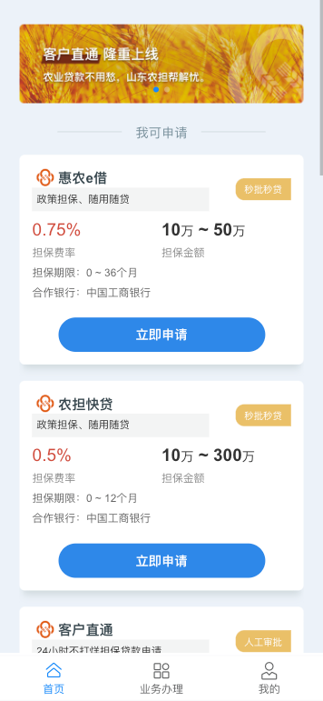 申请“农担快贷”“惠农e借”,农户只需要登录山东农担“鲁担惠农小程序”,就可以在线上直驱到工商银行系统中,工行客户经理上门服务,农户在农田里、鸡舍里就能够享受到数字化带来的便捷贷款。章丘蛋鸡养殖大户、种粮大户张老师就申请了70万元的农担快贷,用于春节前的鸡饲料和小麦化肥等农资采购,他对银担联合打造的高效融资模式非常认可。