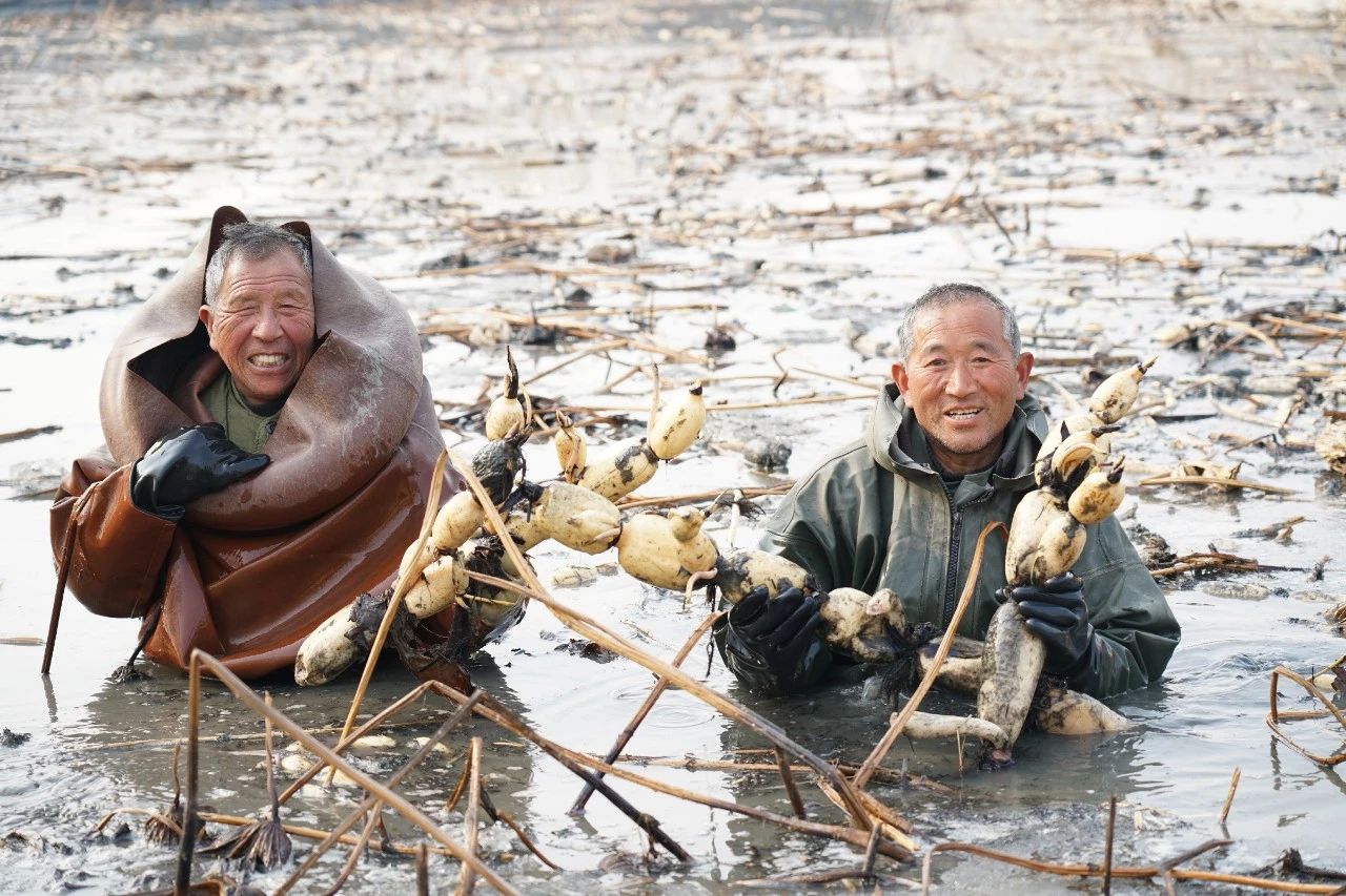 在波光粼粼的微山湖面上,虾藕种养殖农户滕义帅正带领工人采收今冬最后一批莲藕。“春节前订单涨了三成,多亏农担的70万‘及时雨’,让我敢承包这355亩水塘搞藕虾混养。”这位85后新农人摩挲着手中九孔白莲藕,自豪地介绍道。微山湖特有的弱碱性水质造就了藕体洁白如玉、藕丝绵密如锦的独特品质,如今通过电商平台,这些被誉为“水中人参”的莲藕已走进北上广的高端市场,成为消费者餐桌上的新宠。