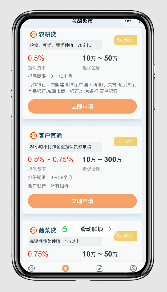 创新推出“访客模式”,改变以往“先注册后浏览”的流程限制,破除传统金融服务的身份验证壁垒。用户无需注册登录,即可全景查看农担产品库,实时获取最新农业扶持政策。该模式将大大提升小程序日均服务用户量,真正实现"让政策主动找人"的服务理念。