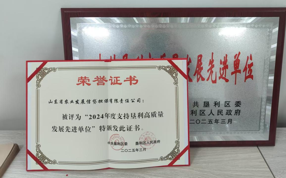 近日,中共垦利区委、垦利区人民政府授予山东农担垦利办事处“支持垦利高质量发展先进单位”荣誉称号,以表彰其在服务乡村振兴、助力地方经济发展等方面做出的突出贡献。