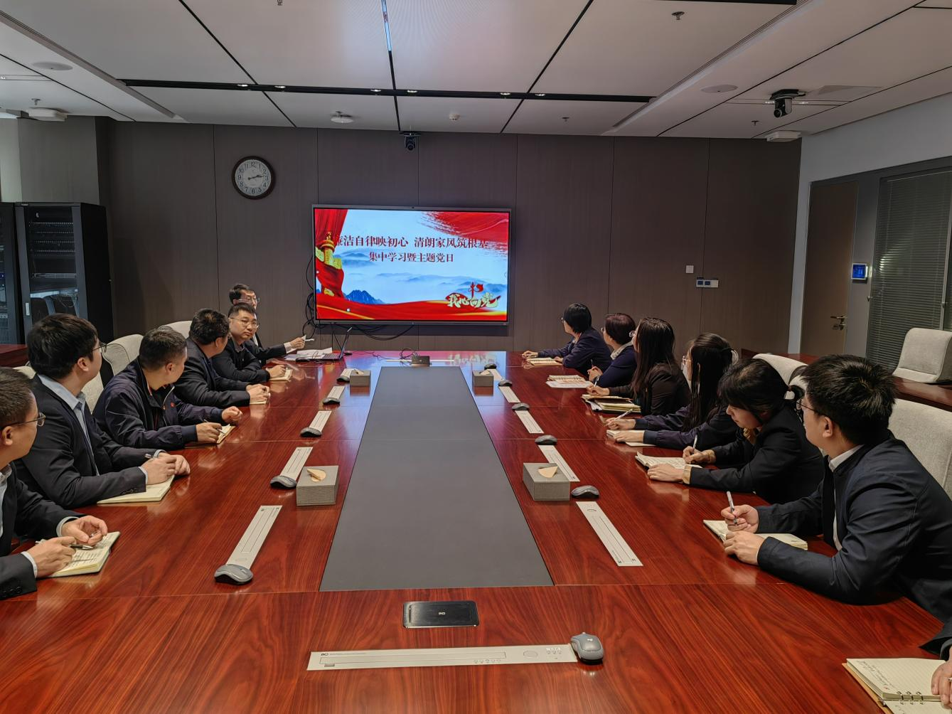 会议首先落实“第一议题”制度,学习习近平总书记在二〇二五年春节团拜会上的讲话,随后,全体人员学习《中国共产党纪律处分条例》《中共中央办公厅关于推进党纪学习教育常态化长效化的意见》等内容,集中观看专题片《反腐为了人民》第二集《风腐同查同治》。党支部书记以《杜绝“微腐败”、筑牢“廉洁关”》为题讲专题廉政党课,从“保持‘赶考’清醒,深刻认识廉政教育重要意义;秉承‘赶考’姿态,以规矩之尺规范行为之度;发扬‘赶考’精神,做‘三式’优秀青年干部”三方面提出具体要求。同时,现场组织开展廉政家风倡议活动,集中发放《廉洁家风建设倡议书》。