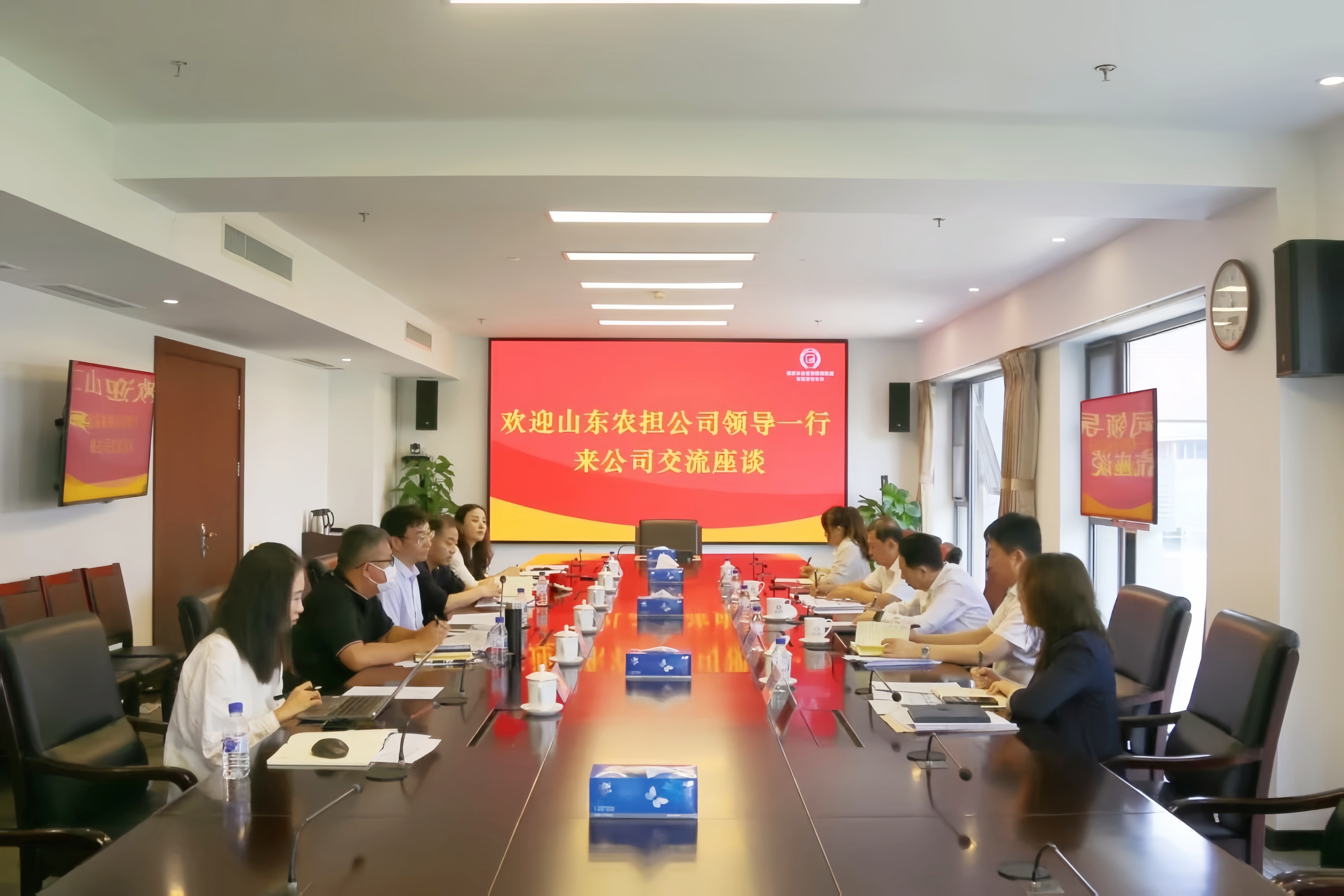 5月28日,山东农担公司党委书记、董事长李航带队赴国家农担公司座谈交流,国家农担公司党委副书记、副董事长、总经理王国航会见并座谈。国家农担公司党委委员、专职董事时以群,山东农担公司党委委员、副总经理胡成立及双方相关部门有关同志参加。双方围绕山东农担经营发展、数字化转型、风险防控等有关情况开展交流。