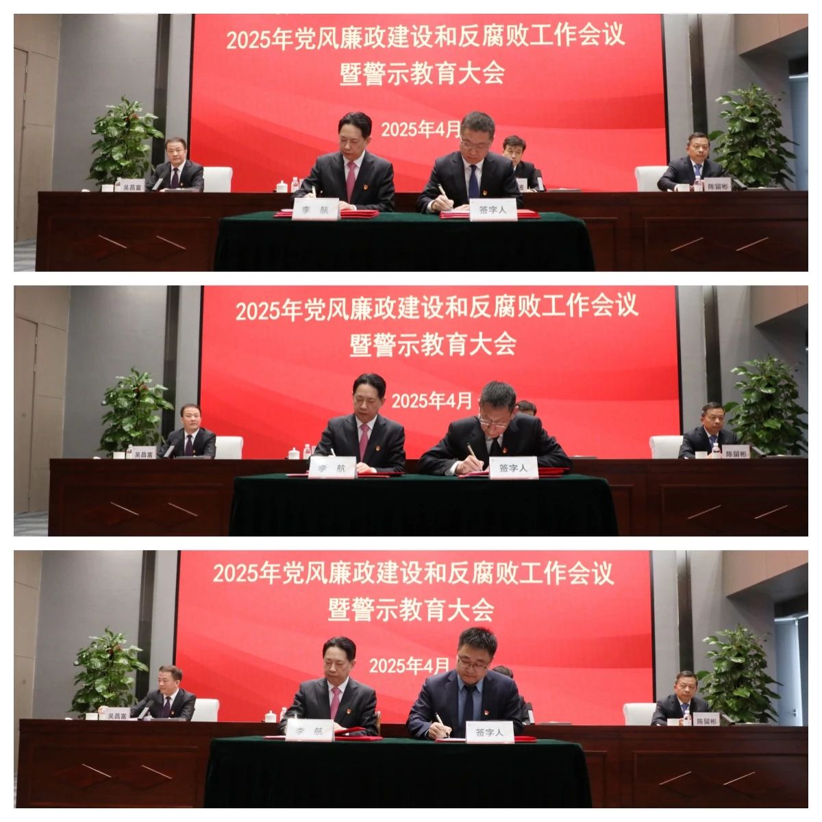 会上,李航同志与公司部室、管理中心(分公司)党支部书记代表、权属公司代表签订了《全面从严治党责任书》;公司全体党员干部职工集体观看了公司拍摄的《五廉助“吾廉”清风润农担》专题片。