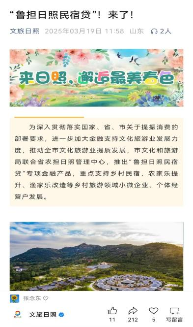 早在前期,日照农担便与日照市文旅局进行深入对接和交流,围绕乡村民宿产业现状、金融扶持方案进行多轮探讨。同时,日照农担面向建行东港支行、东港农商行山海天支行、日照银行山海天支行等主力合作支行,多次开展业务培训,并联合银行精准对接经营主体,主动上门服务。通过在文旅日照公众号、日照日报融媒体等媒体平台宣传推广,以及有关活动现场发放宣传单页等多元化宣传方式,积极融入地方产业发展规划,全力助推日照渔家民宿产业转型升级,目前已累计为208户民宿经营主体提供了1.19亿元政策性担保支持,2024年日照农担“文旅贷项目”被评选为日照市第三届金融创新一等奖,并获10万元市级财政专项奖补。